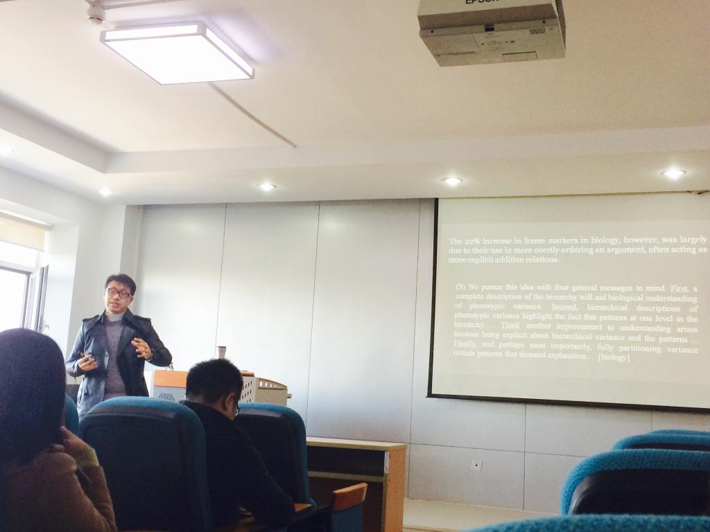 2017年10月30日,吉林大学公共外语教育学院,匡亚明特聘教授姜峰应北航外国语学院邀请,在如心楼806为我院师生带来题为“Disciplinarymetadiscourse and academic Interaction: Where’s it all Going?”的精彩讲座。外国语学院董敏副院长主持了本次讲座。