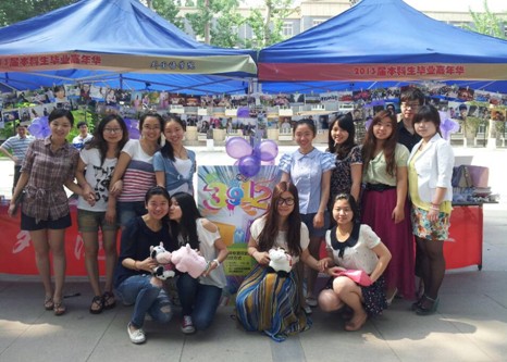 外国语学院09级的同学们饱含着四年来一贯的积极热情,清早便到达场地开始进行装饰展台等前期准备工作。8点半活动正式开始时,外国语学院精心装点的摊位,温馨亮丽——“最美笑脸墙”,“签名寄语”,“二手书市场”,“拍立得留影”… 真情流露的丰富内容,独具特色的活动形式,使外院的展区成为了一道亮丽的风景,正如外国语学院作为一个文科院系在学校浓厚的理工科背景下为大家带来的一袭饱含人文气息的清风。